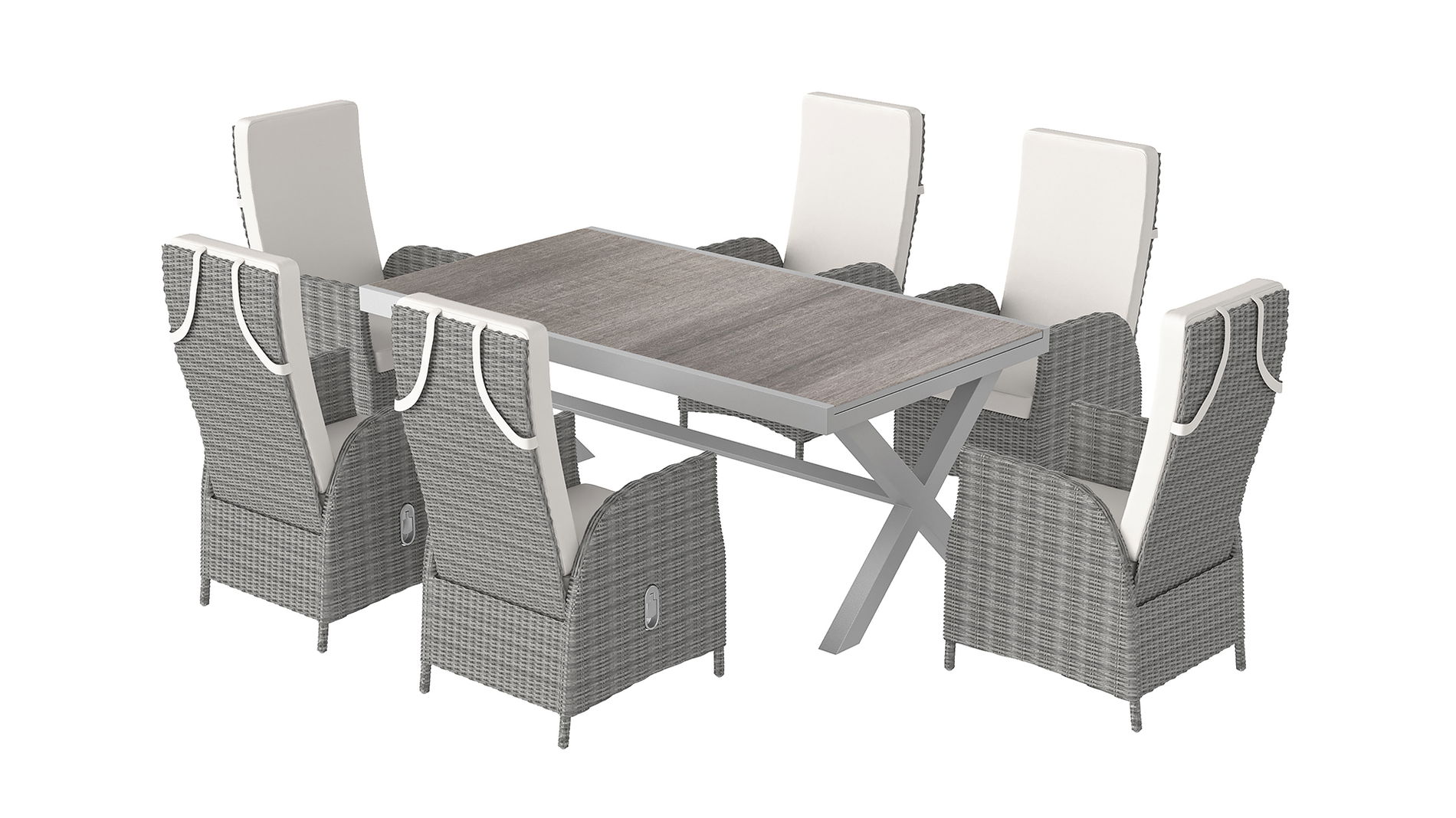 - W oparciach, w celu wzmocnienia konstrukcji, zastosowano elementy stalowe. Pomimo wysokiej jakości wykonania, nie można wykluczyć, że w zależności od wpływu warunków atmosferycznych, mogą one rdzewieć. Przy całorocznym użytkowaniu zestawu na zewnątrz zalecamy użycie pokrowca ochronnego.